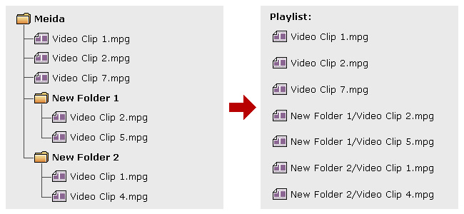 The playlist is the order how all multimedia files in the folder media are played. If you do not edit your own playlist, SMP will play all files in the Media Folder in the alphabetical order. If you create sub-folders under the folder media, all media files in these sub-folders will also be added together to the playlist according to the following sorting rules: (the former rules have higher priority than the later ones)
